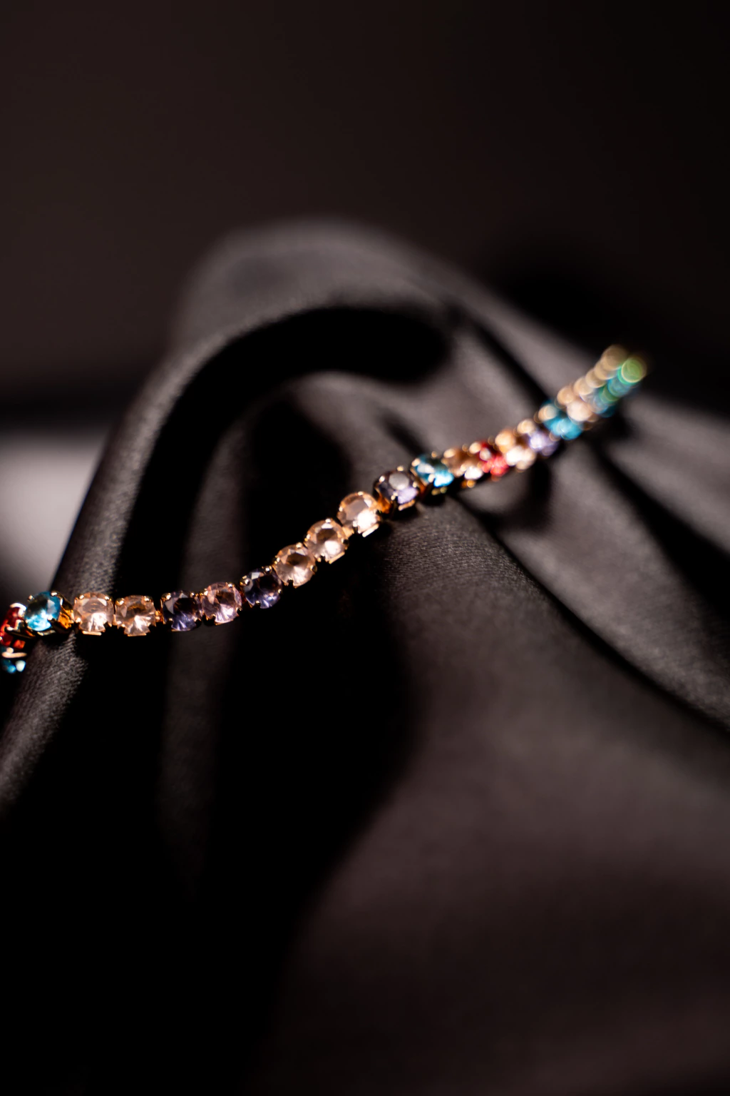 A Pulseira Riviera Aurora foi criada para capturar a magia do amanhecer aquele instante em que a luz começa a dançar e tudo ganha novos tons. Inspirada nos reflexos suaves da aurora, ela combina pedras cuidadosamente lapidadas com um brilho contínuo que envolve o pulso de forma delicada e marcante.